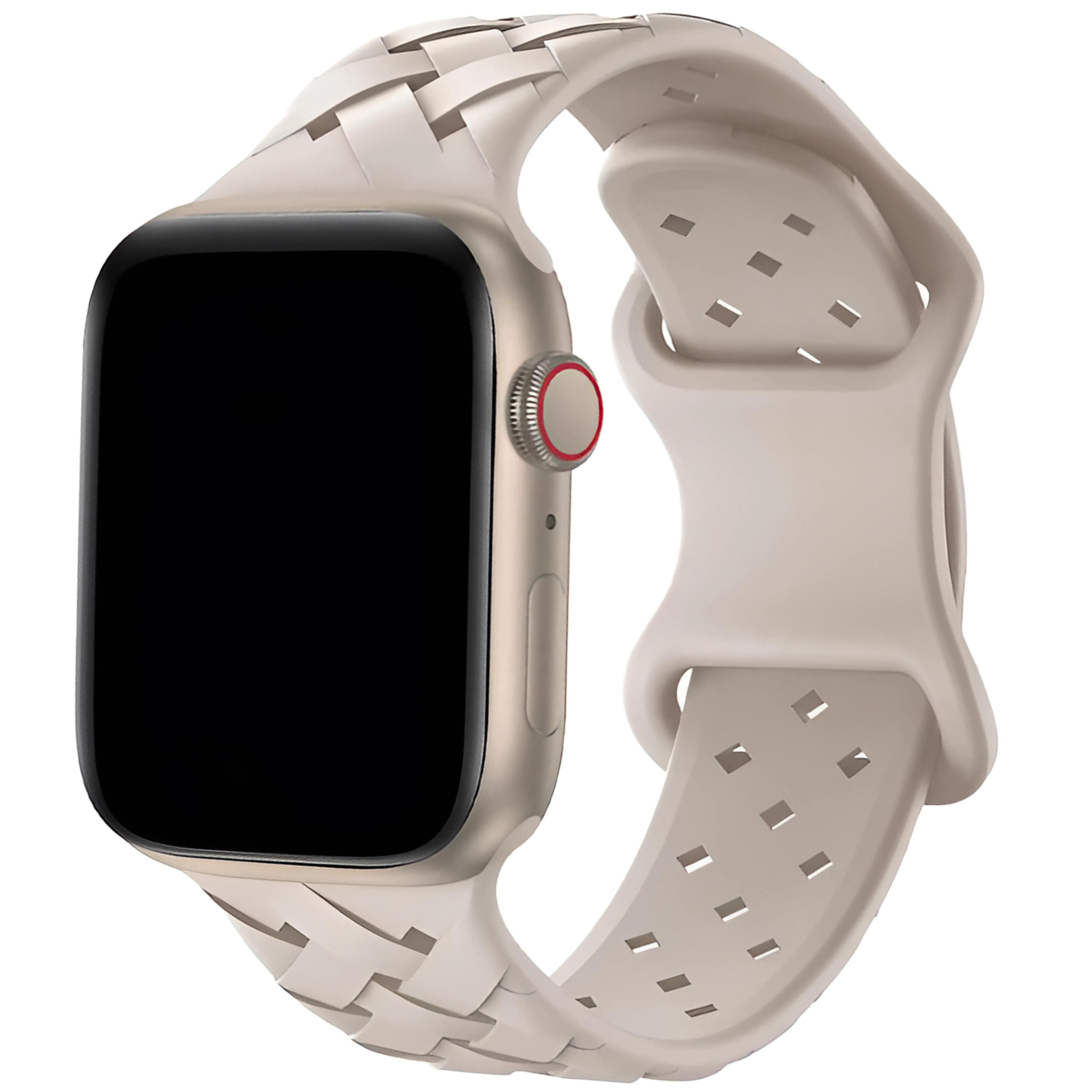 Het Innerlight® Wave siliconen bandje in de kleur Creme Wit is geschikt voor verschillende Apple Watch-modellen, waaronder Series 1, 2,...