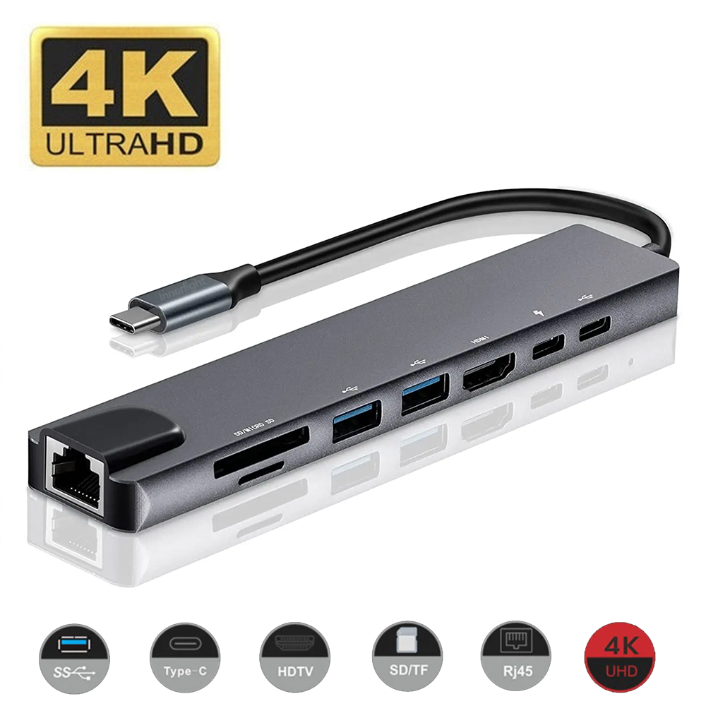 - 8 in 1 multiport hub met 4K HD-ondersteuning