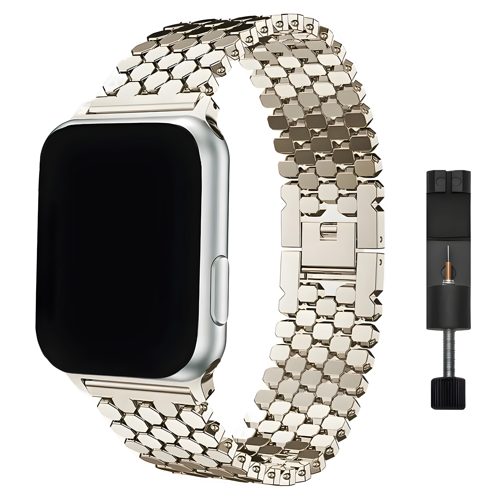 Het Innerlight® Hexagon+ Metalen bandje in Starlight voegt een vleugje elegantie en stijl toe aan je Apple Watch. Het bandje is gemaakt van hoogwaardig roestvrijstaal (RVS), wat het niet alleen duurzaam maakt, maar ook bestand tegen slijtage en corrosie. Het schakel armband ontwerp geeft een klassieke en tijdloze uitstraling aan je Apple Watch, waardoor het perfect is voor zowel formele gelegenheden als dagelijks gebruik.