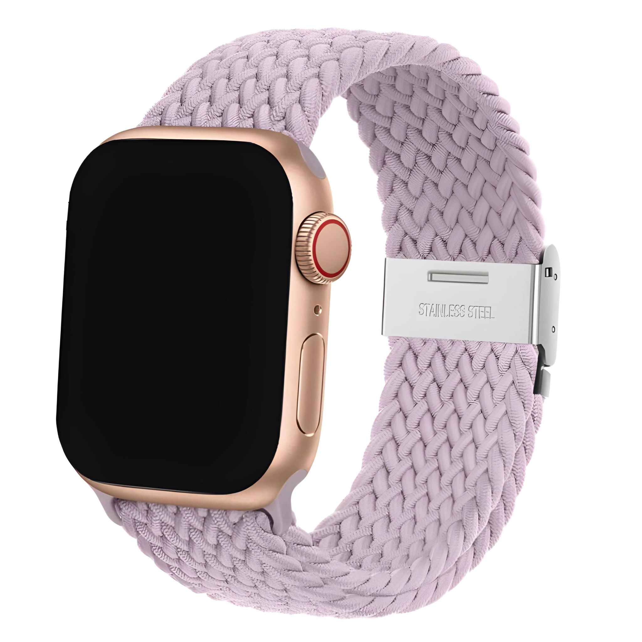 Het Innerlight® Nylon+ bandje in Nylon Lila Paars Geweven is geschikt voor de Apple Watch Series 1, 2, 3, 4, 5, 6, 7, 8, 9 en SE. Het bandje heeft een breedte van 38, 40 of 41 mm en is gemaakt van hoogwaardig nylon materiaal met een stijlvol geweven patroon.