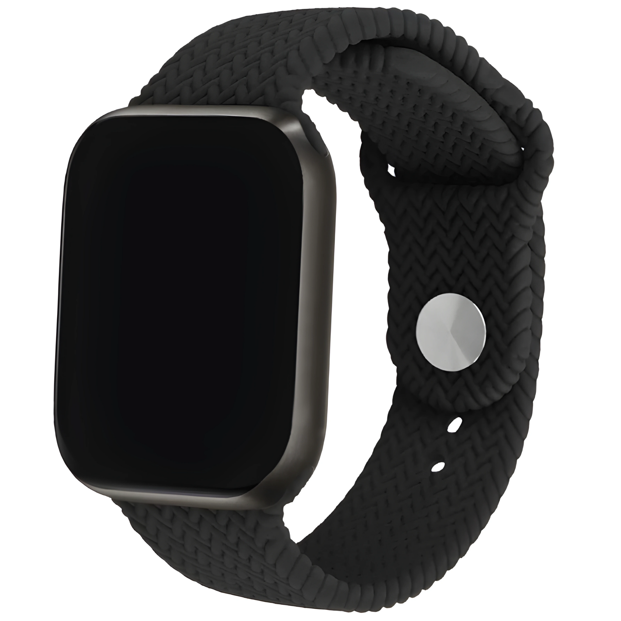 Het Innerlight® Woven+ siliconen bandje in de kleur Zwart Geweven is geschikt voor diverse Apple Watch-modellen, waaronder Series 1, 2, 3, 4, 5, 6, 7, 8, 9 en SE. Het bandje heeft een breedte van 38, 40 of 41 mm en is gemaakt van hoogwaardig siliconen materiaal met een geweven patroon.